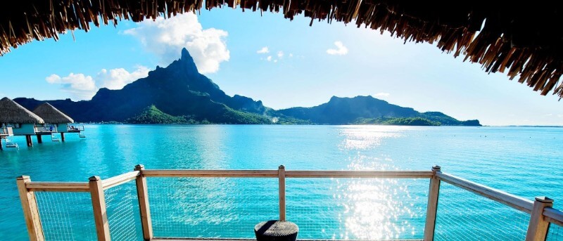 目の前に美しいラグーンを見下ろし、正面にオテマヌ山を眺めることが出来る最高のロケーション。ここから眺めるオテマヌ山とターコイズブルーのラグーンの景色は、フォトジェニックなシーンの連続するル・メリディアン・ボラボラの中でも屈指の美しさです。